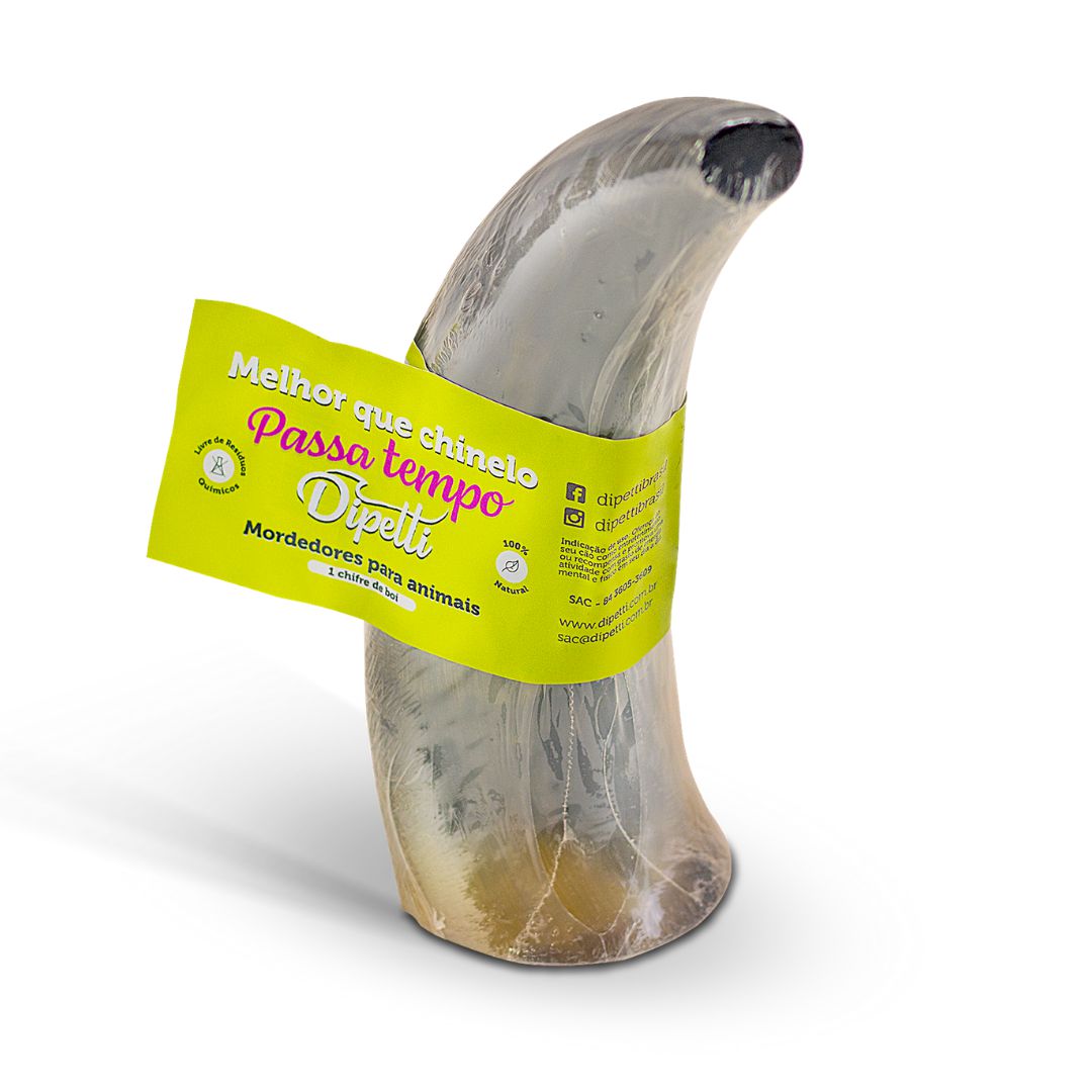 O pacote Passa Tempo da DIPETTI vem com a ponta do chifre bovino desidratado. 100% natural. Livre de resíduos químicos.