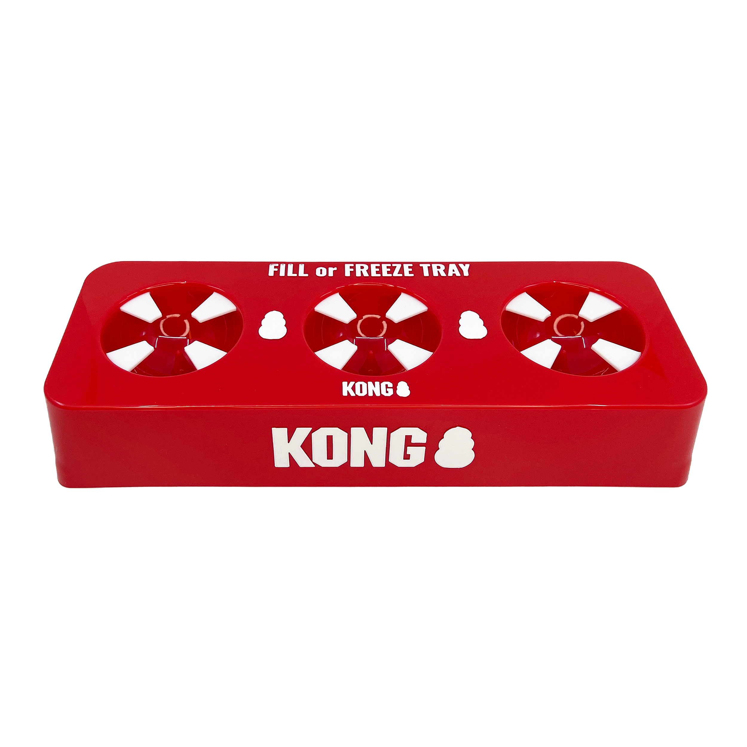 Mantém os KONGs virados para cima para evitar que o recheio caia durante o preenchimento e também congelamento. Além disso, ele "fecha" o furo para evitar que fique vazando pelo buraquinho (só não veda tanto, então se o recheio for muito líquido ainda vaza um pouquinho... prefira colocar algum petisco seco no fundo que ajuda também a não ficar pingando)