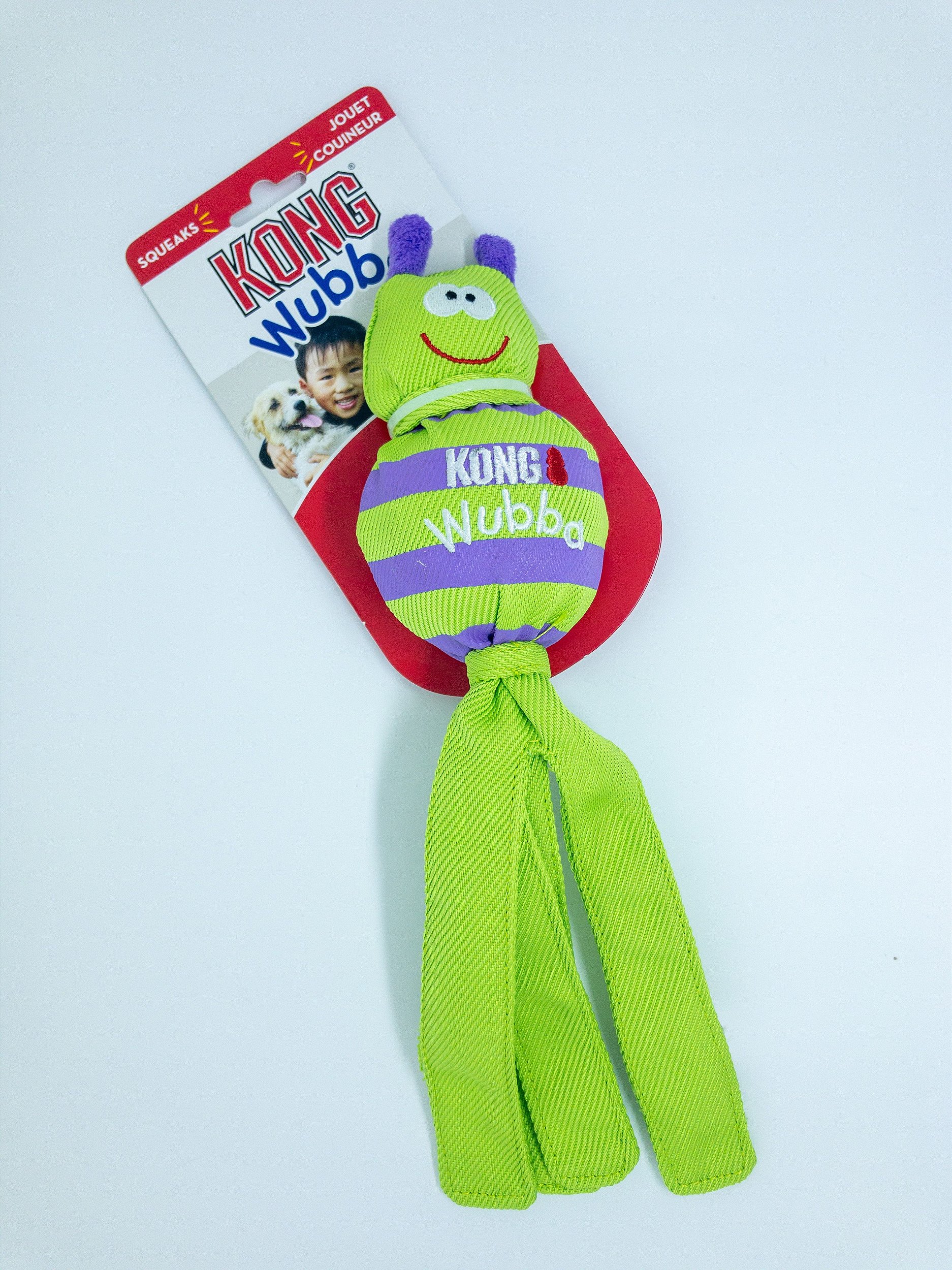 O KONG Wubba™ Bug é um divertido brinquedo interativo de puxar e atirar, suas longas caudas são ideais para movimentos de puxar, bem como jogos de buscar. São fofos e resistentes. É feito para sacudir, apertar e apitar, provocando os instintos naturais do seu cão. Esse inseto não têm asas, mas nasceu para voar em jogos de busca, mantendo os cães ativos e envolvidos com os tutores. Contém apito.